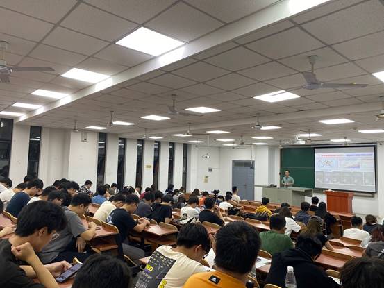 在提问环节,刘老师解答了同学们提出的“俄乌冲突对石油发展的影响”、“未来就业的基本方向”等问题。刘老师声情并茂,用通俗易懂的言语、丰富多彩的实例以及有趣的互动充分调动同学们的学习积极性,既拓宽了同学们的视野,又增强了同学们的责任感与使命感。