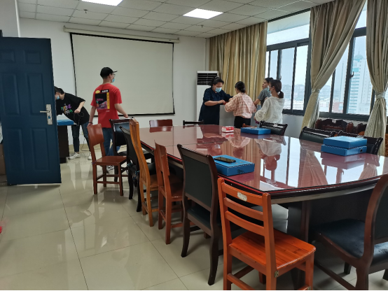 下午2点45分,志愿者们在南苑19A宿舍楼下集合清点人数,天空下起的小雨并没有冲淡他们的热情,反而为闷热的天气增添了几分凉爽。志愿者们准时到达文科大楼,在老师的指导下被分为两组,分配了任务。扫地、拖地、试卷整理、摆放桌椅等等都有条不紊地进行。活动过程中,志愿者们始终保持着热情完成了清扫活动,凸显出了公司志愿者健康向上、乐于奉献的良好品格。随着整个清扫整理工作顺利完成,会议室焕然一新。最终,以合影留念结束了本次的志愿活动。