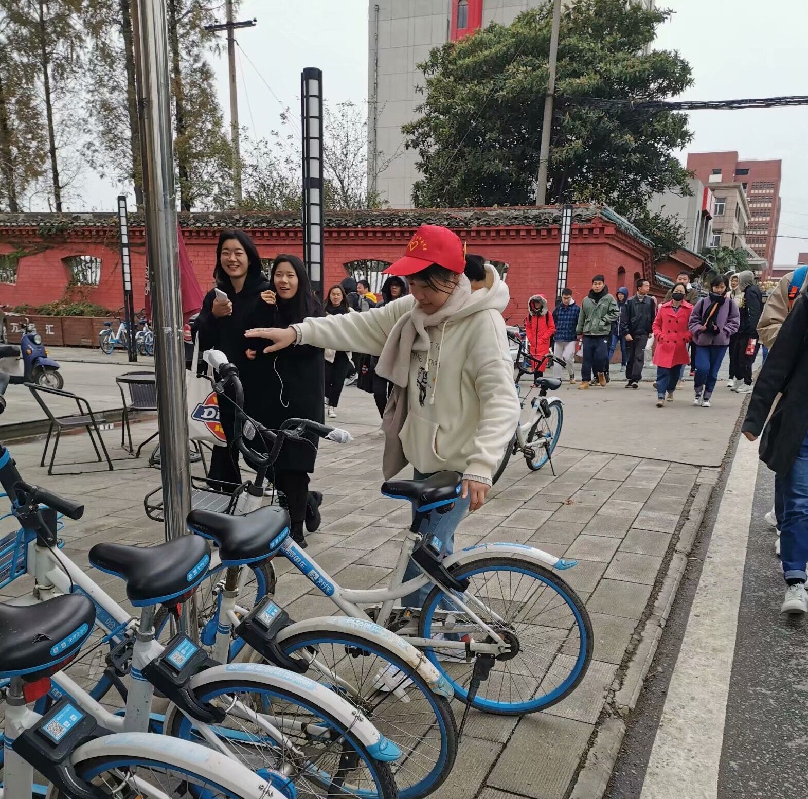 天气逐日恶劣,风雨交加,但公司志愿者刘新美,郑国琴,吴伦广,张文树等同学不畏严寒,按时到达执勤点,坚守岗位,并对附近的共享单车进行有序摆放,营造文明和谐的校园环境。
