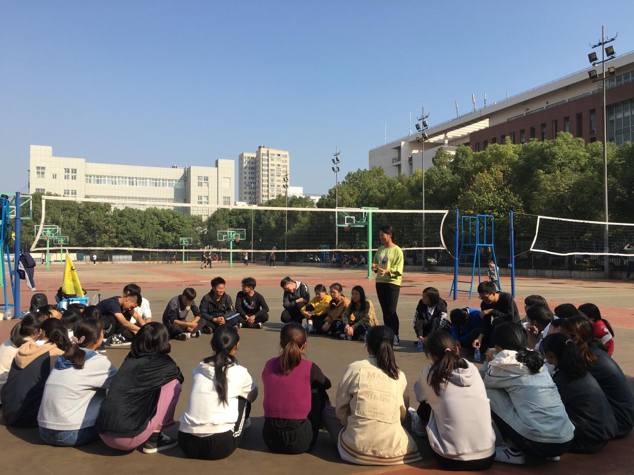 上午7:20同学们在南苑集合,一同前往球场。在教练的引导下,经过简单的暖场热身游戏后,同学们以班级为单位有序开展各项素拓活动。活动中,同学们集思广益,精诚协作,克服一个个难关,挑战一个个项目,超越自我,挑战极限。