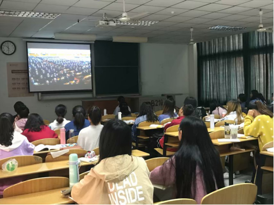 同学们对习近平总书记的讲话由衷地期待,提前40多分钟就来到直播现场,等待大会开始。当大会宣布全体起立,唱国歌时,同学们不约而同地起立,和视频一起深情款款地唱起了国歌。整整一小时,跟随总书记的讲话,同学们认真思索着五四精神的魅力,聆听着总书记对广大青年的谆谆教诲和殷殷期盼。